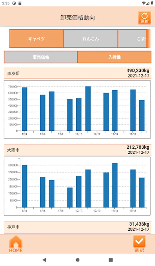 The data for the past 10 days in the central wholesale markets of 15 major cities in Japan are displayed as a graph.
