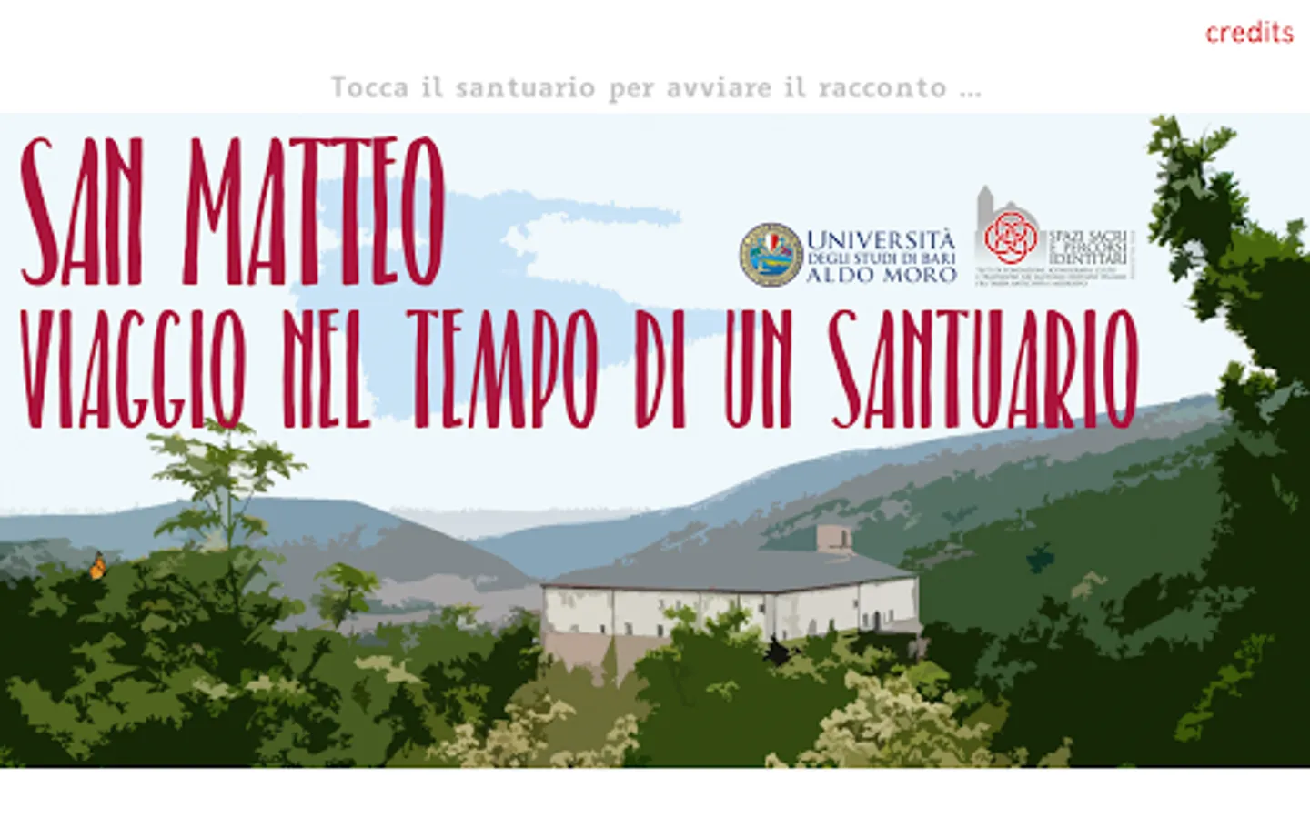 A digital story that combines study and narration for a nature trail through the ages and the history of the Sanctuary of St. Matthew in San Marco in Lamis. This story offers swipe at all, through a fictional story, the ability to understand and investigate the events of the sanctuary, but also arouses the interest for a wider trip and a longer journey, that it travels the whole Gargano promontory, with its sanctuaries, the cults, the historical centers, the traditions.