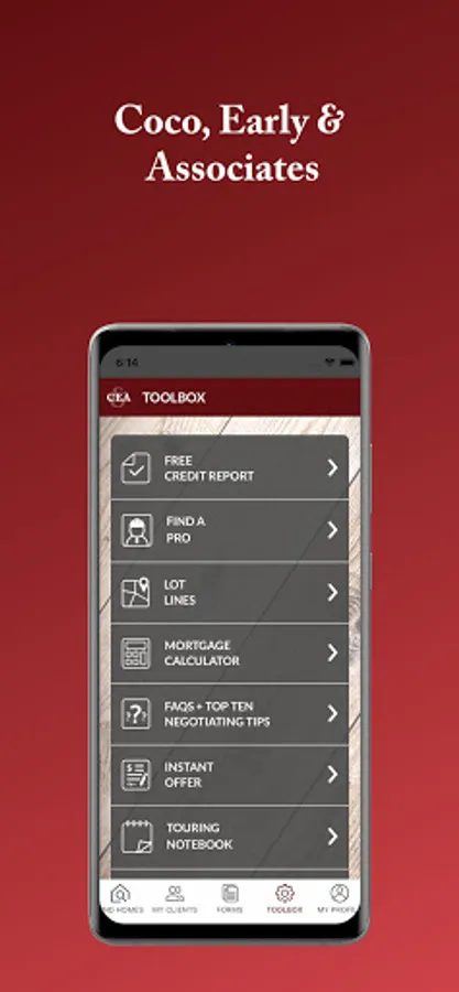 This application is only available to Coco, Early & Associates Real Estate Company Agents, and their Consumers.