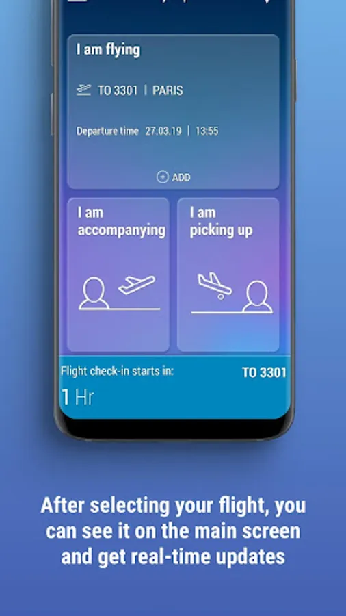 • The app will use notification mechanisms to provide flight updates – delays, changes, etc.