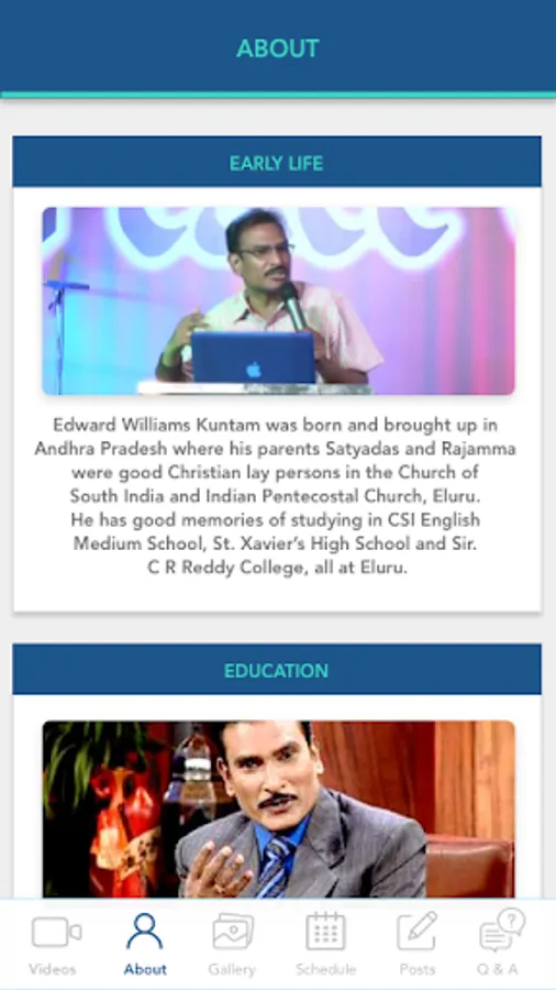 App explains about Edward Williams, provides contact details, user can also enquire for any queries, You can also find Edward williams monthly Calender to pray and participate for the programs. App also having posts, latest pictures of Edward Williams