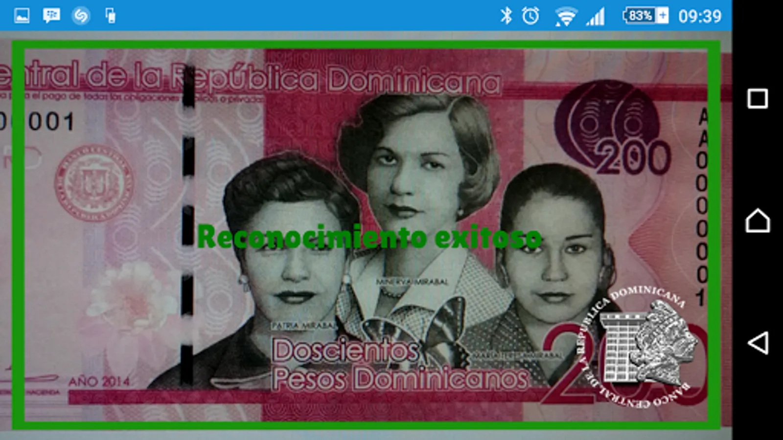 Mobile Dominicans recognition application notes for automatic identification audible designations of families existing airline official currency of the Dominican Republic, the Dominican peso. Focused especially for the blind.