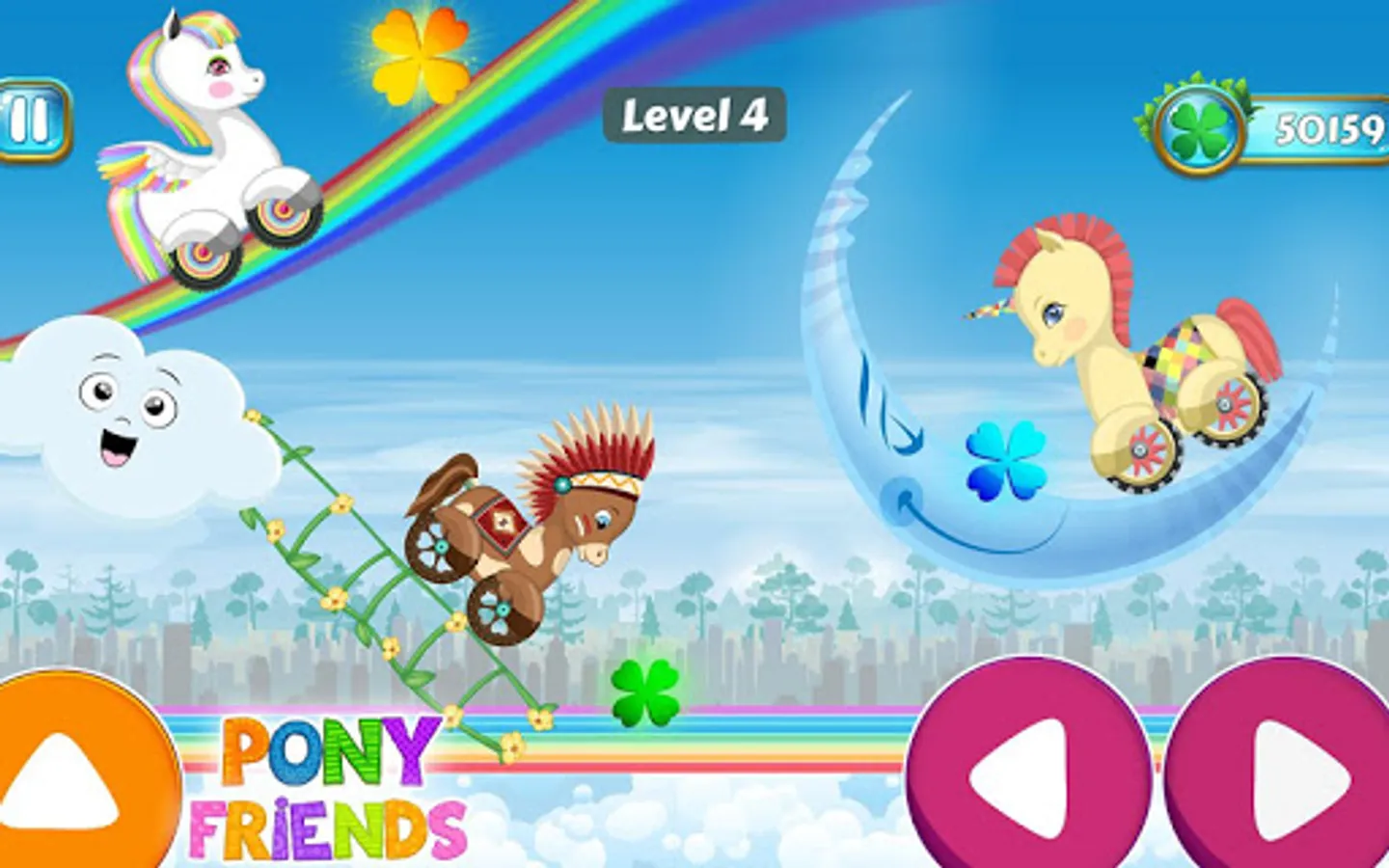 * Simple racing game for girl kids – ride the horse with an easy finger touch combination, just tap to move forward and jump to catch all the lucky clovers.