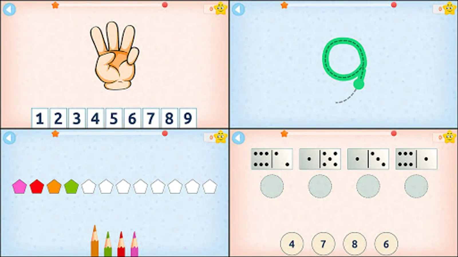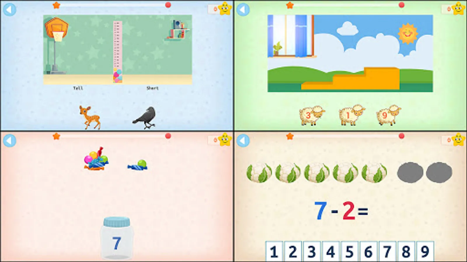 This math game has a consistent motivational system that encourages children to learn with actions and they should not be afraid of mistakes.