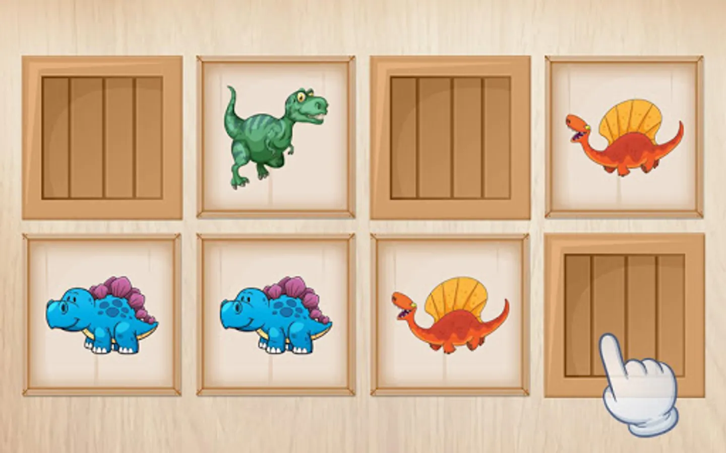 Memory game – Free game with increasing difficulty, find the pair of dinosaurs in a grid of 4, 6, 8 and 12 memory blocks.