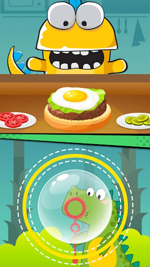 * Feed the hungry Dino: he knows what he wants to eat, and you need to recognize the vegetable and feed him.