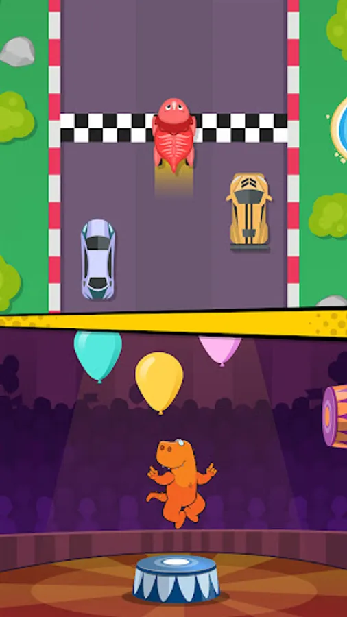 * Racing game: race with your dinosaur car and avoid all the other vehicles to reach the finish line first.