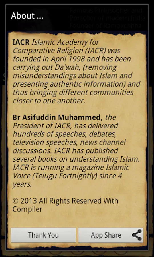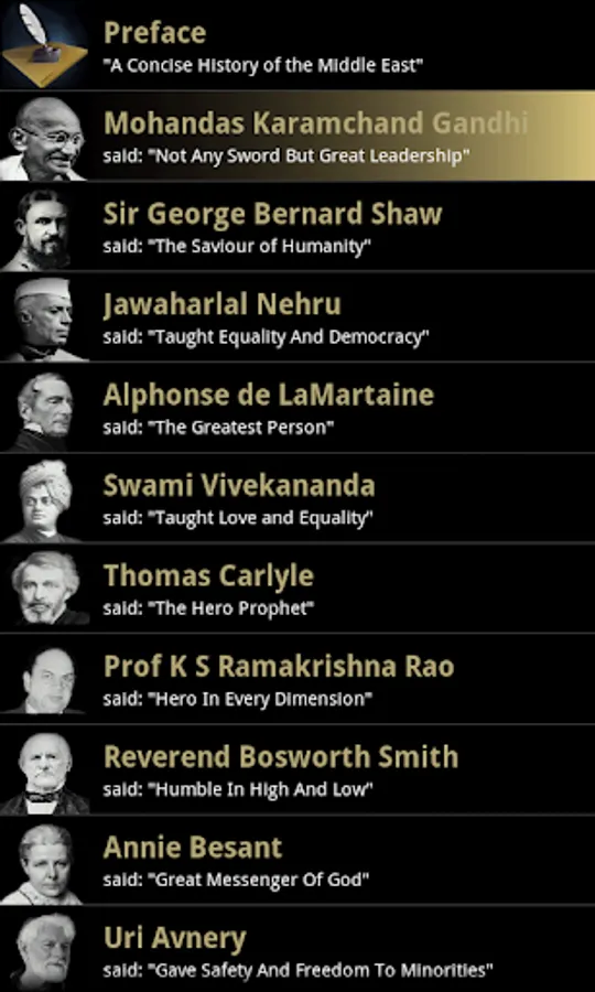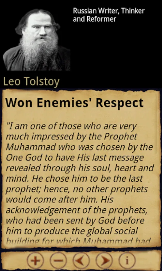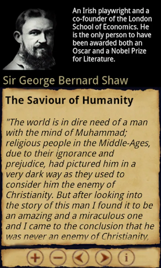 This apps is rather the most comprehensive collection of quotes of world's best known scholars and thinkers about Prophet Muhammed (peace be upon him). This apps is for all, Muslims and non Muslims, no bar.