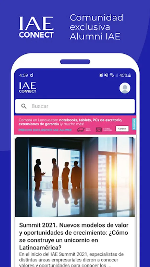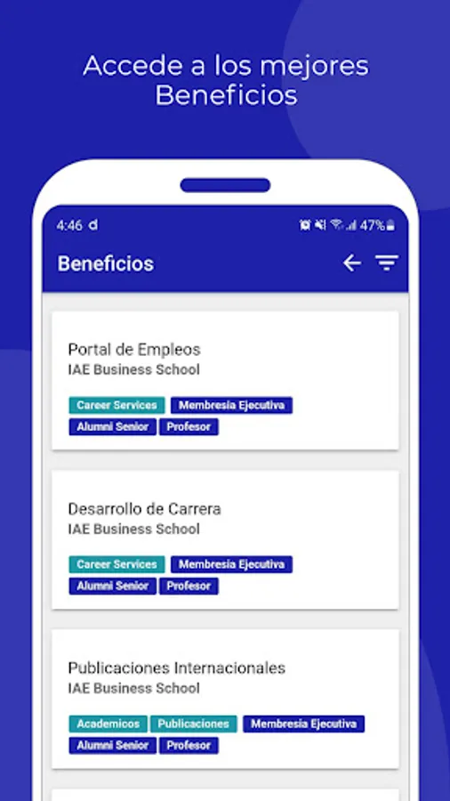 With the application of IAE Alumni, you can define your topics of interest, find out about events, meetings and news that the alumni network is generating.