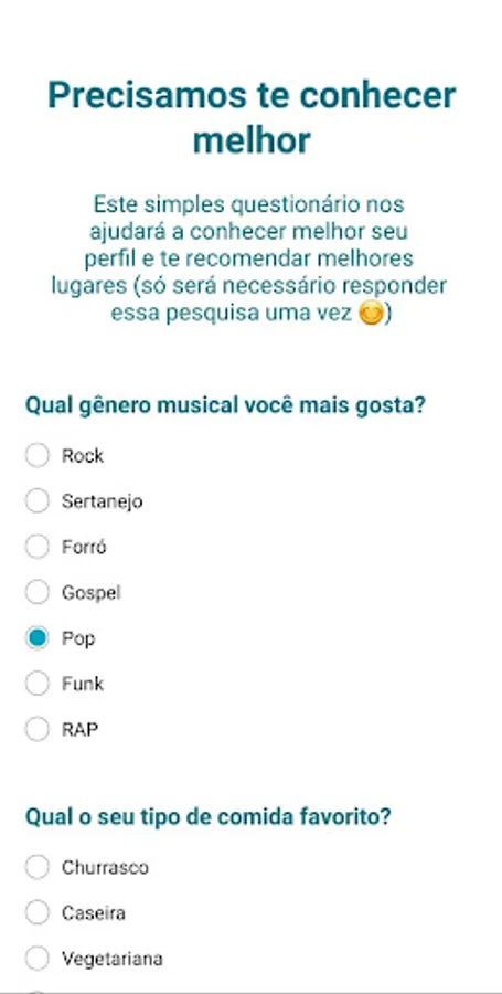 To use the app, just log in using a Google account and answer a short questionnaire so that we can better understand your profile and personal tastes. With this, we can recommend routes according to your profile so that you can better enjoy your tour (reducing that doubt of not knowing if you would like the place or not) and, to top it off, discover new places that you may have never heard of.