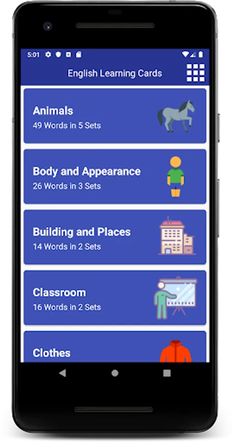 English Learning Cards App will help you to improve vocabulary by images and games. Games will make your learning become easier, funny and more interesting.