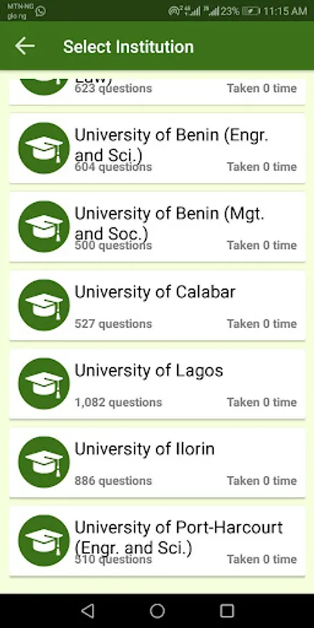 ExamGuide for Post UTME also called POST-JAMB is an e-learning and testing app that helps candidates prepare for Post UTME organized by higher institutions in Nigeria. It has numerous past questions from 13 universities including Ahmadu Bello University, Bayero University Kano, Federal University of Owerri, Obafemi Awolowo University, University of Ibadan, University of Benin, University of Calabar, University of Lagos, University of Ilorin, University of Port-Harcourt, University of Uyo, Nnamdi Azikiwe University, University of Nigeria and additional 4000 questions. It works 100% offline - no need of downloading any other content after installing the app.