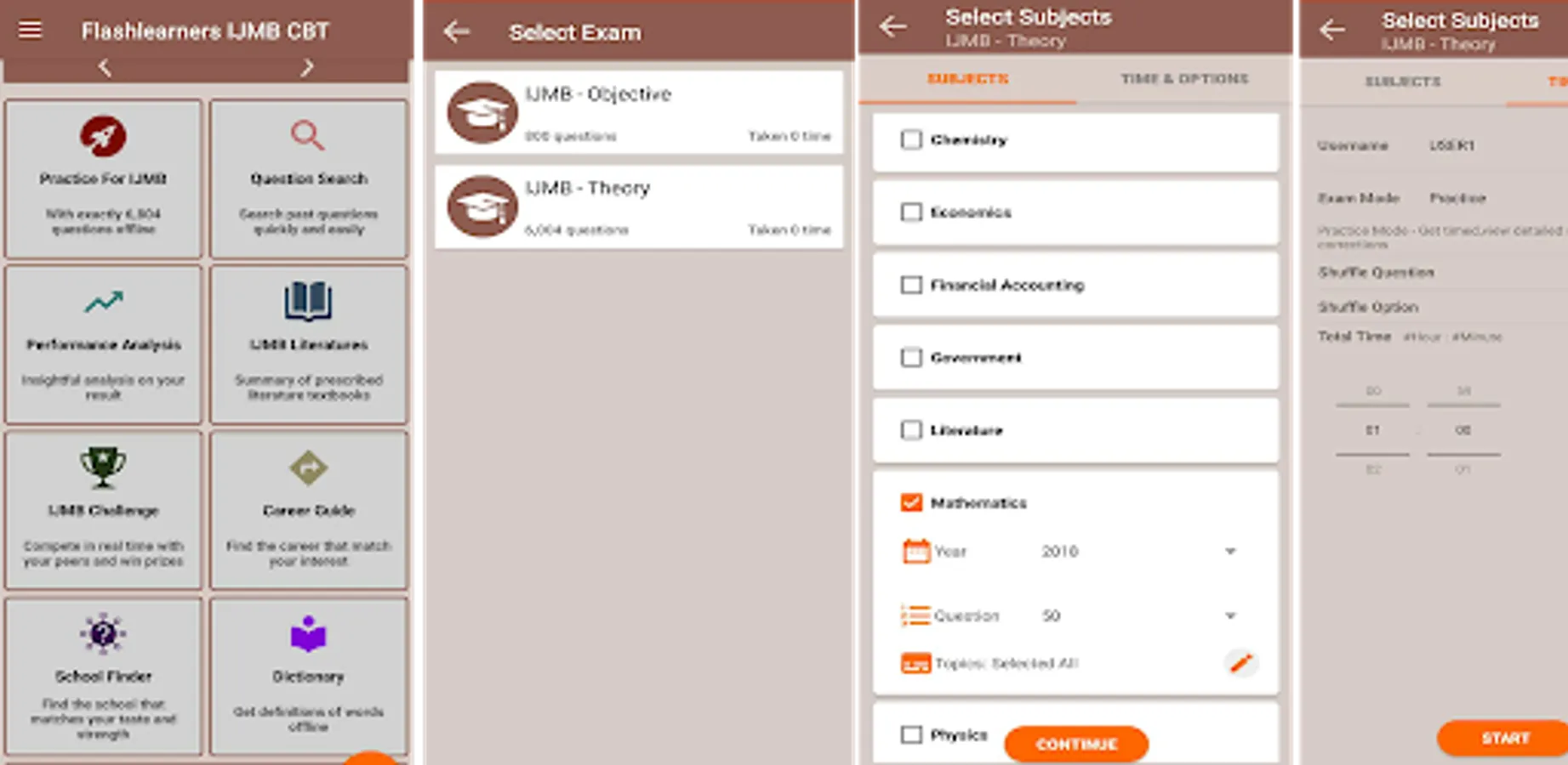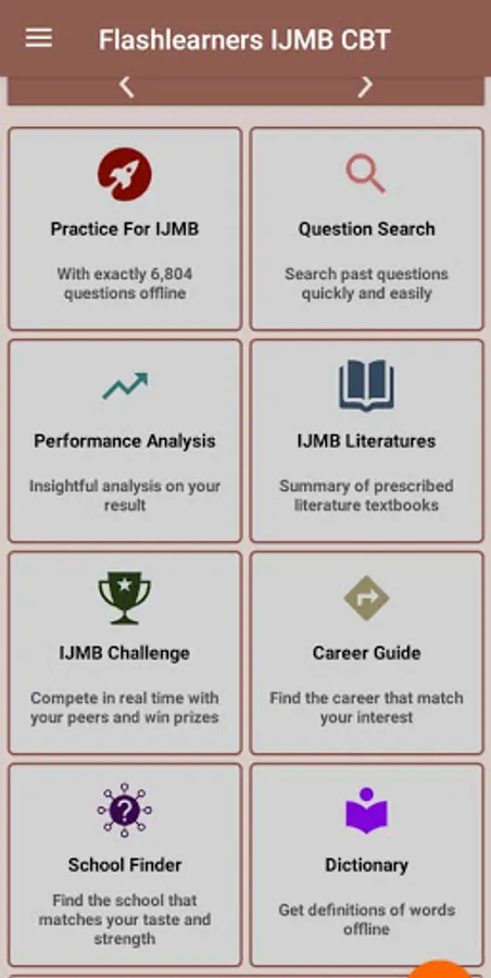 FlashLearners IJMB 2022 App Features Thousands of IJMB Past Questions & Solutions, Intelligent Chat Box, IJMB Challenge, Performance Analysis, Question Search, Career Guide, etc