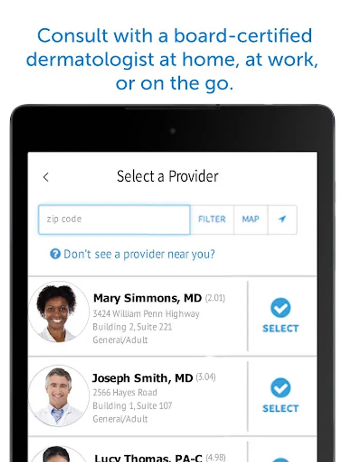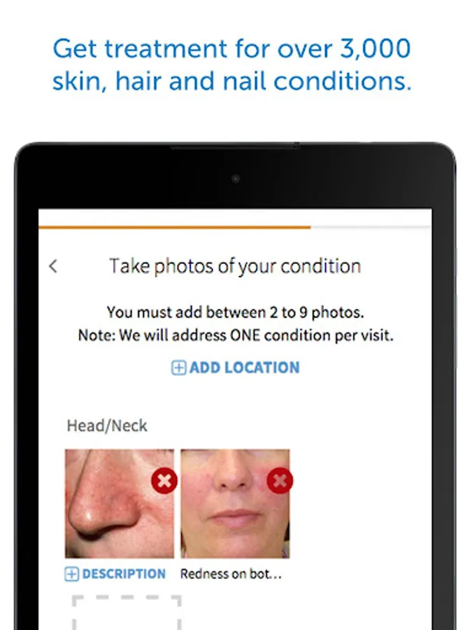 Florida residents can quickly receive a diagnosis and personalized treatment plan (with prescriptions if medically necessary) from a U.S. board-certified dermatologist. Simply provide a brief description of your medical history and upload pictures of your condition through the secure app. More than 3,000 skin, hair and nail issues can be diagnosed online including acne, suspicious moles, rosacea, eczema, psoriasis and many more.
