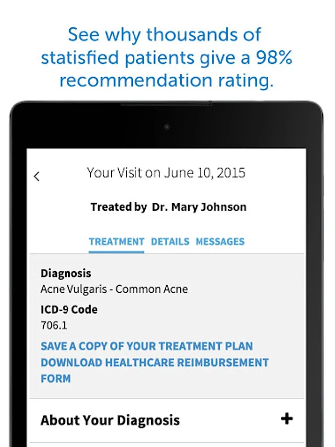 Residents of Wisconsin, Michigan, Minnesota, Iowa and Kentucky can quickly receive a diagnosis and personalized treatment plan (with prescriptions if medically necessary) from a U.S. board-certified dermatologist. Simply provide a brief description of your medical history and upload pictures of your condition through the secure app. More than 3,000 skin, hair and nail issues can be diagnosed online including acne, suspicious moles, rosacea, eczema, psoriasis and many more.