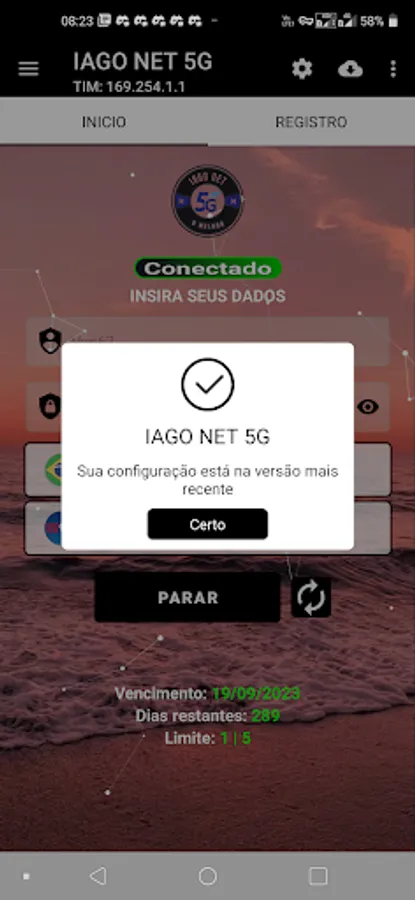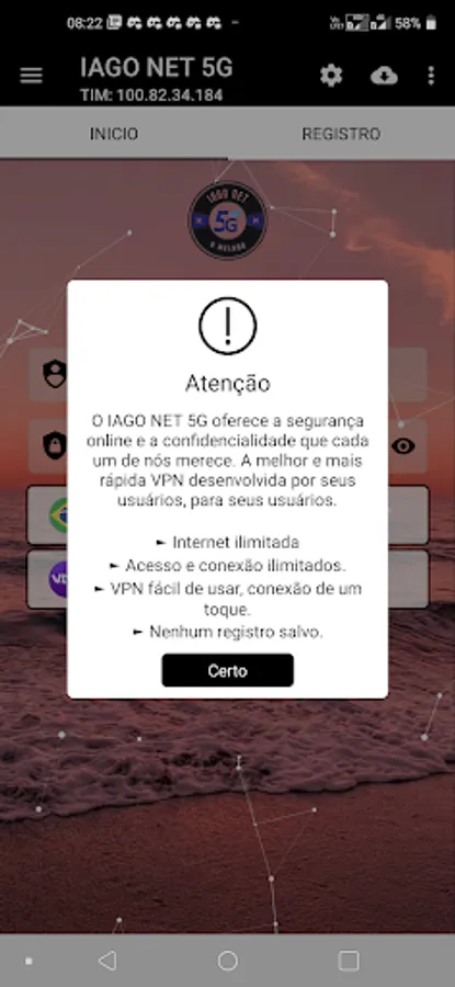 Internet connection through the app.