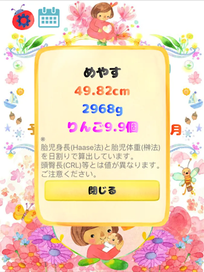 出産予定日には、赤ちゃんのアイコンを表示しています。