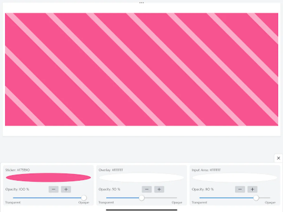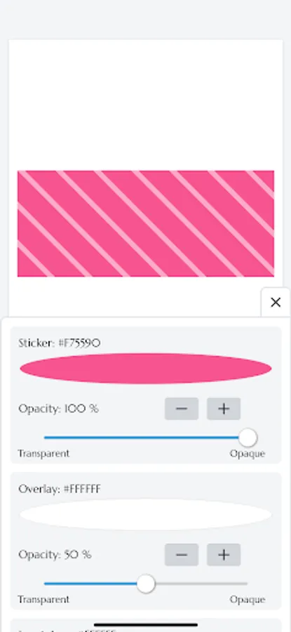 In common with each sticker, you can change the color and opacity of the sticker and overlay, as well as the width and height of the sticker.