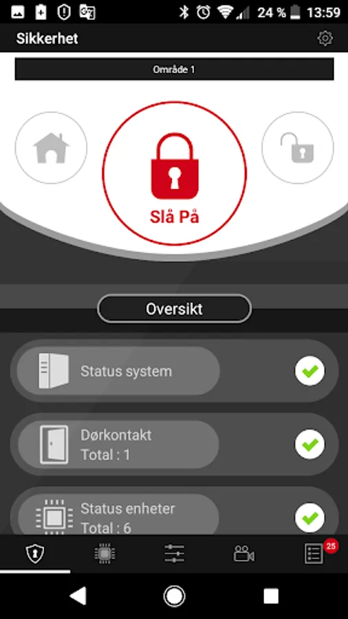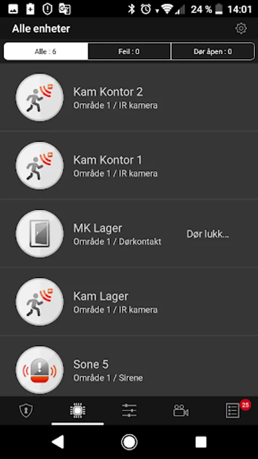 The Norwegian Army uses detectors with camera and also has an IP camera that integrates with the system. This provides a complete video verification solution when the alarm goes. The alarms come as push messages via app or as email, sms / mms. Upon receipt, you can immediately decide whether the alarm is sharp or not. Video verification lets you call the police. They are then obliged to intervene. You also have the opportunity to see HOME and check that everything is good.