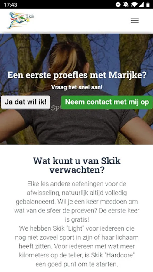 We also have Skik-light if you first have to start to get loose. If your body already has a few more kilometers on the clock, then Skik-hardcore is a good starting point of course. Do you dare “one-on-one” with Marijke? Then you get a flashy start at Skik-one!