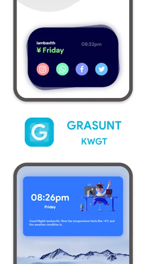 Grasunt is a pack of carefully crafted widgets with attention to detail! The speciality of the pack is its Gradient colors! These widgets will definitely make your screens look beautiful! Each widget comes with it's own set of Globals which will help you customize the widget to your liking! Every widget is set perfectly at 100% scaling and it is recommended to keep the scaling at 100% for best results!