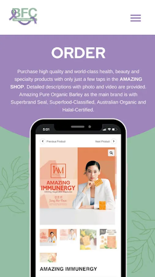 BFC is a proud distributor partner of IAM Worldwide Corporation which commits to providing high quality products as zealous as protecting its reputation. It is at the forefront of bringing world-class specialty products and has a roster of credible and respectable brand ambassadors like Heart Evangelista and Jung Hu-Yeon. The Amazing Products are guaranteed with the Superbrand Seal and certifications of FDA, Australian Organic and Halal.