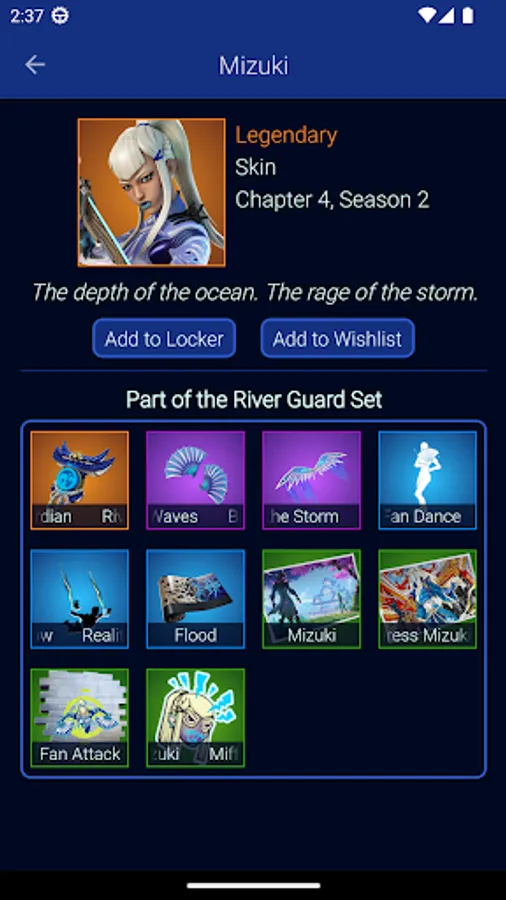 - Browse all cosmetics in the game, see what other cosmetics are in the same set, and even add them to your locker if you own them!