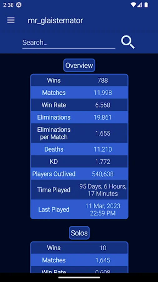 - Search for stats by Epic Games, Playstation, or Xbox usernames!
