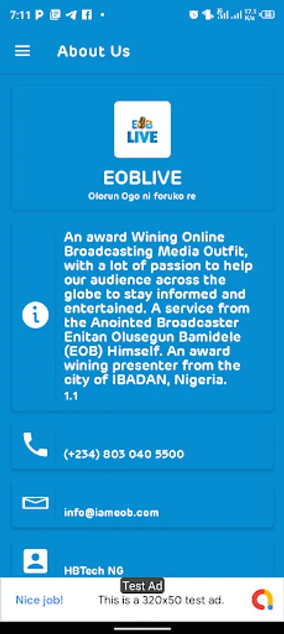 A service from the Anointed Broadcaster Enitan Olusegun Bamidele (EOB) Himself. An award wining presenter from the city of IBADAN, Nigeria.
