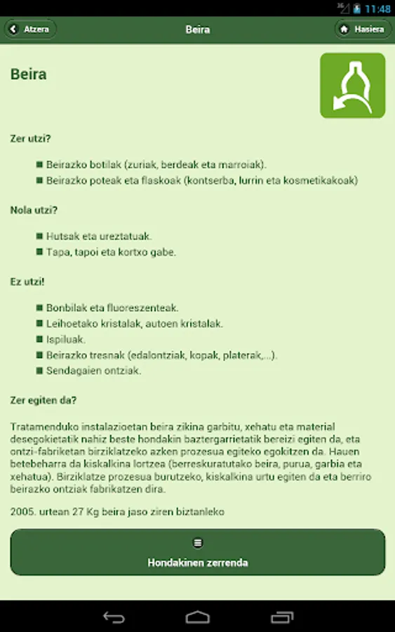 The purpose of this application is to help the citizens of the Commonwealth of Tolosaldea to recycle and answer your questions.