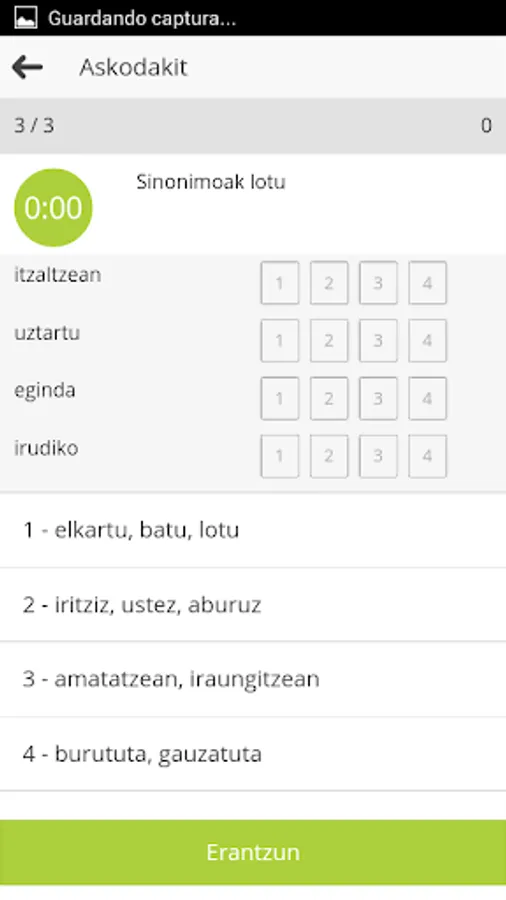Denboraren erantzunez AURKA galdera sorta ahalik eta azkarren ERANTZUN hobetzeko puntuazioa. Baina kontuz, huts eginez dituzu eta gero puntuak galduko!