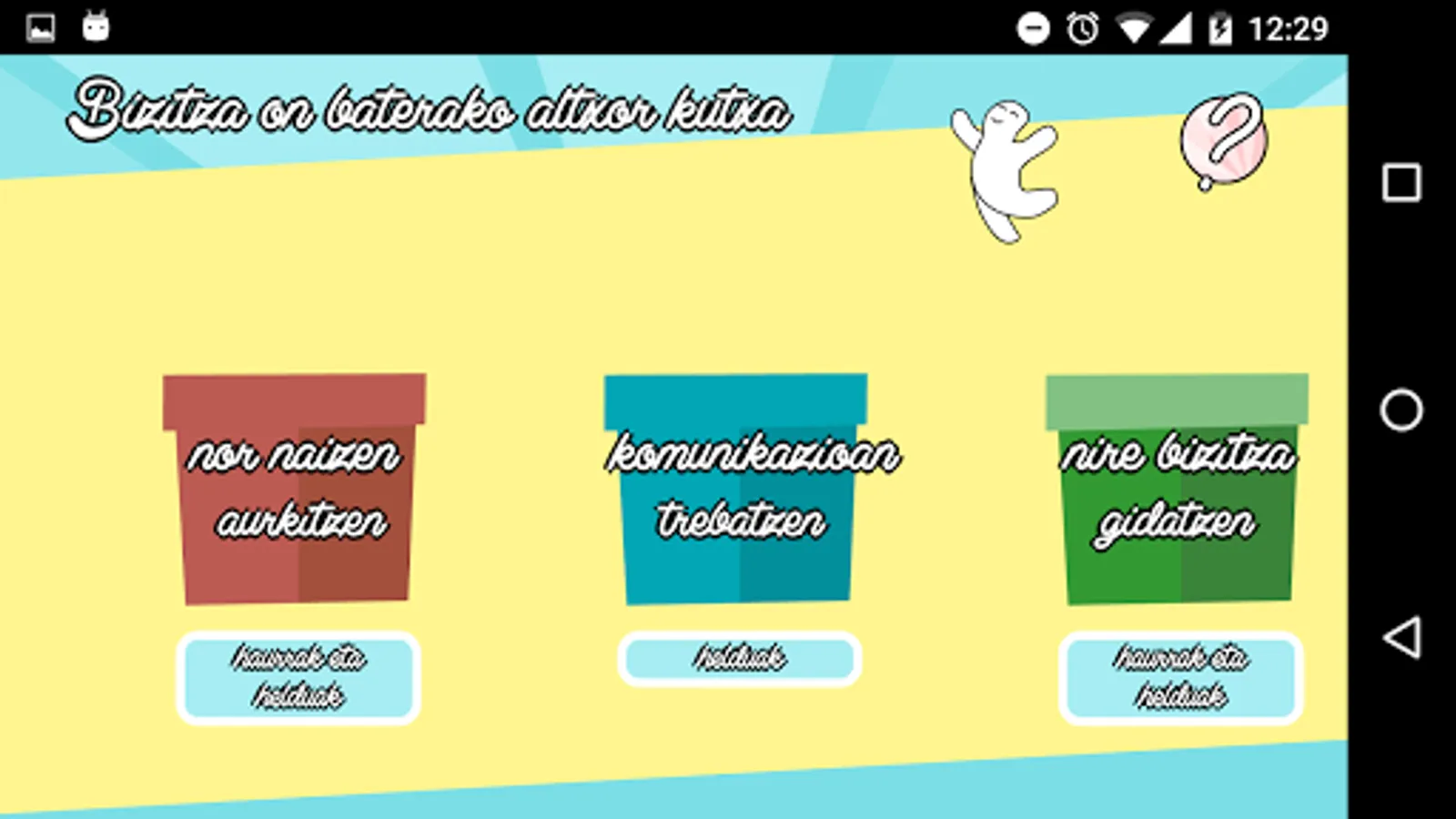 The idea of this project Nerea Mendizabal psychologists and social educator Zutani (http://www.hartueman.com/index.php/baliabideak/joku-didaktikoa) is based on an educational game on the board.