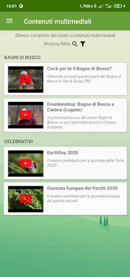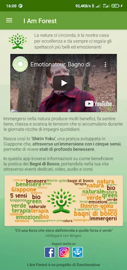 In this app you will find information on how to benefit from the practice of Bagni di Bosco, bringing it into your life through dedicated events, videos, audio and courses.