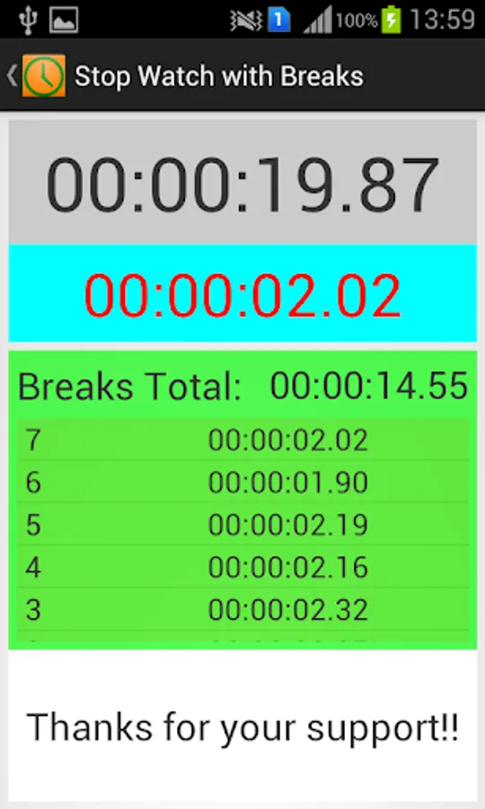 1 Stop Watch with Breaks - user can take breaks and the time of breaks also shown.