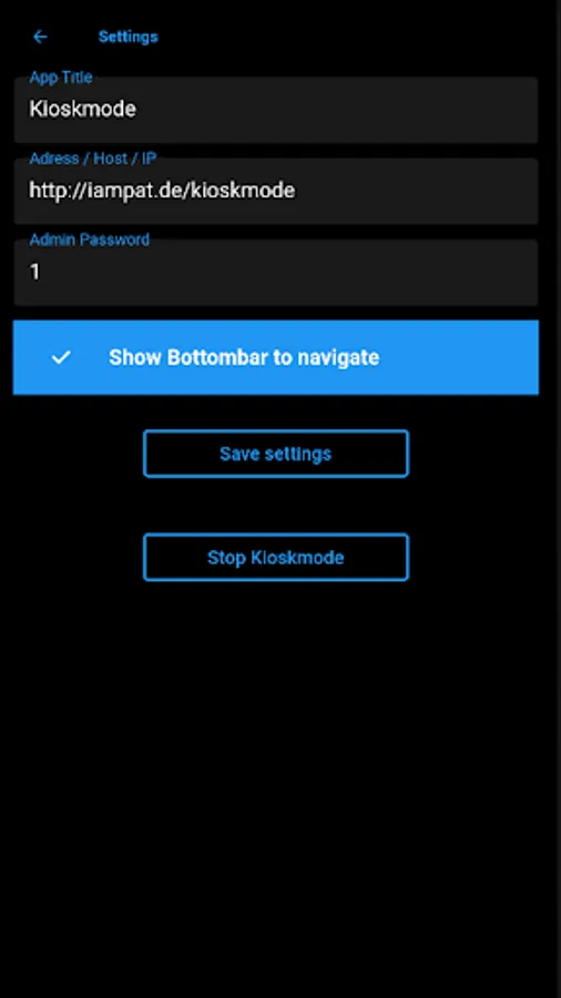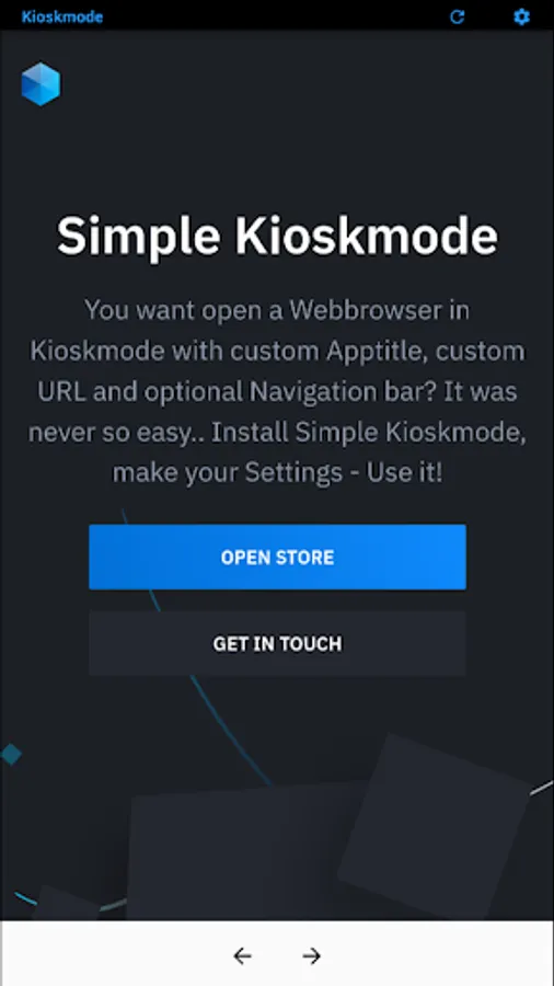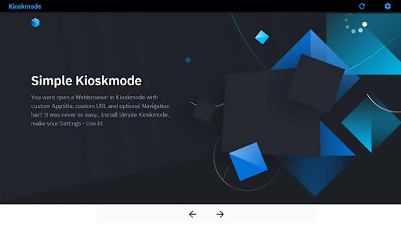 You want open a Webbrowser in Kioskmode with custom Apptitle, custom URL and optional Navigation bar? It was never so easy.. Install Simple Kioskmode, make your Settings - Use it!