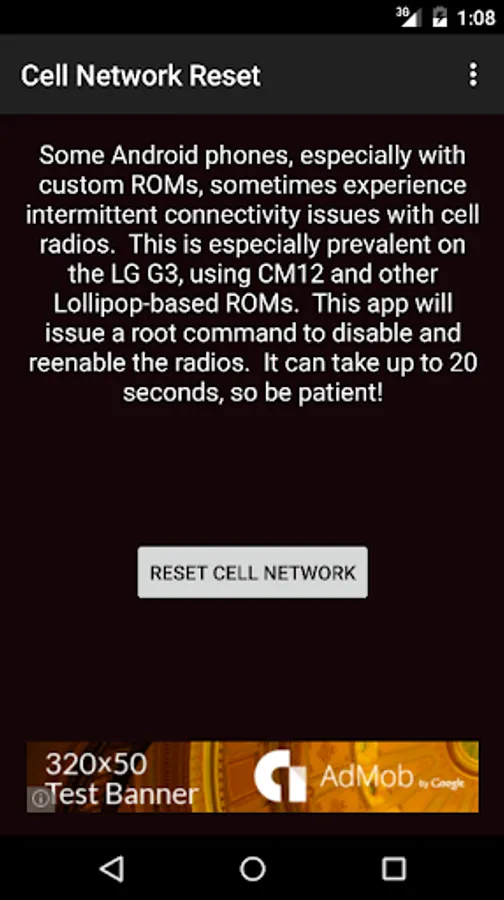 Some ROMs are notorious for having cellular signal loss, especially the LG G3 with CM12 and other 5.x ROMs. The workaround has always been to issue `killall rild` in the terminal, but this app now does it for you with a button press.