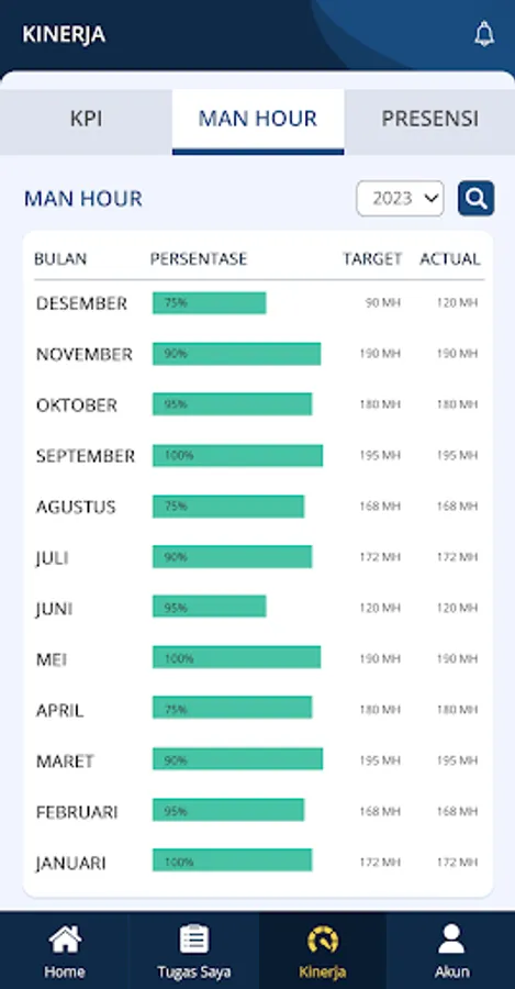 • Jam kerja bulanan