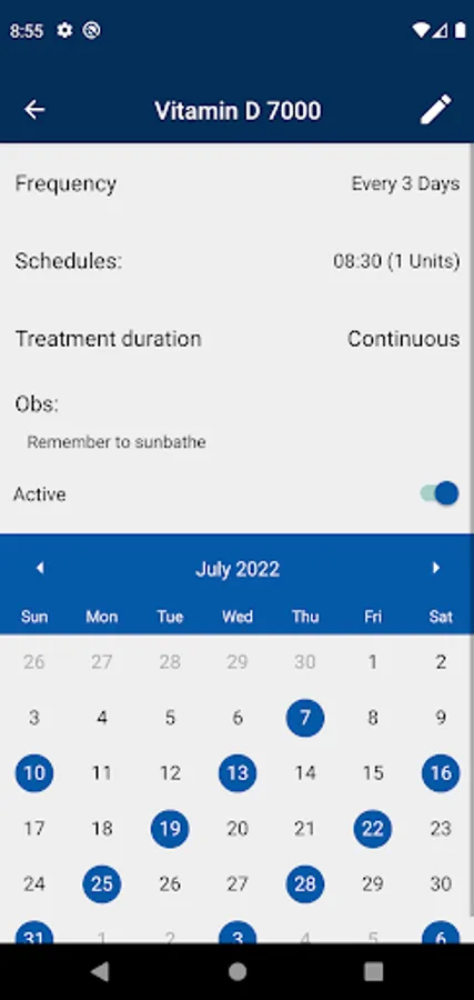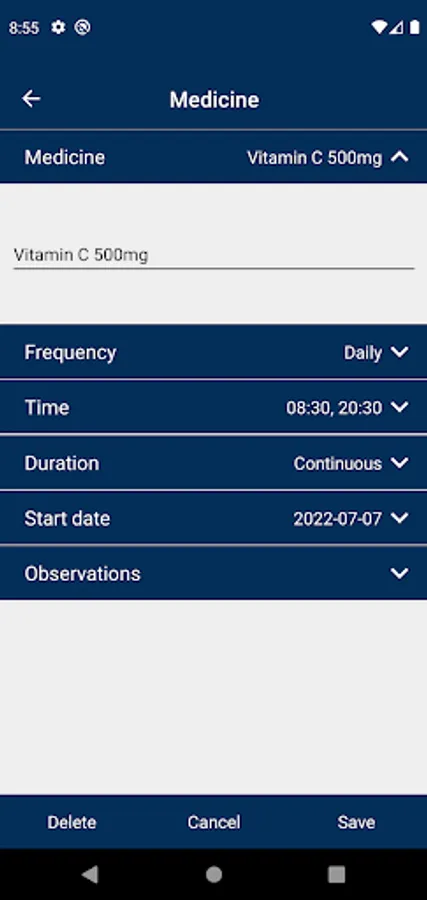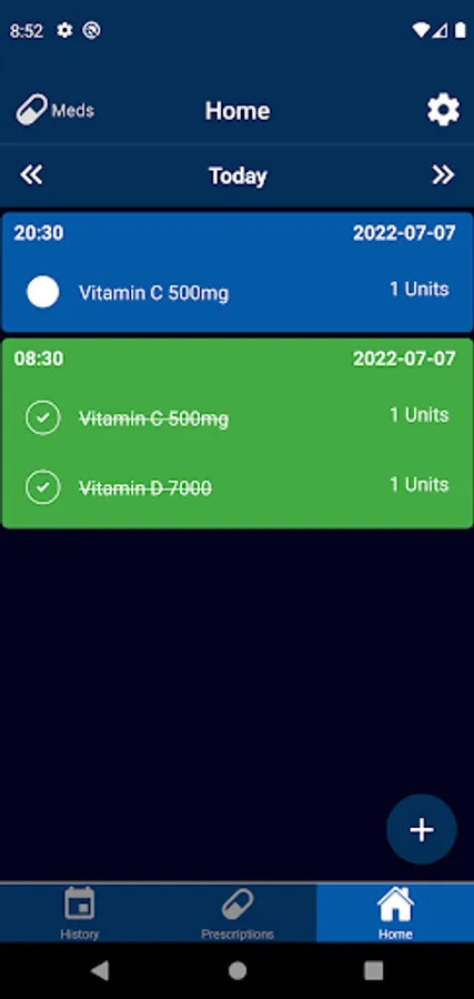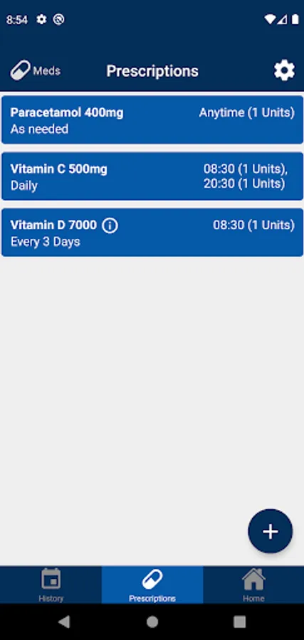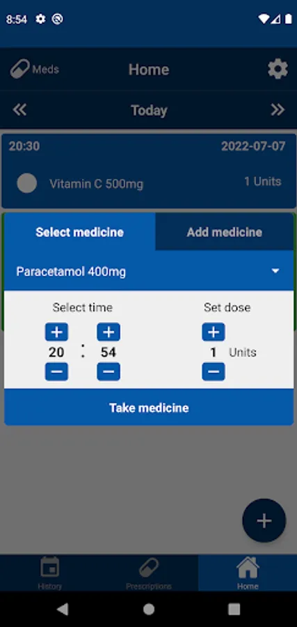 Here you can add prescriptions of medicines and receive notifications when the time comes.