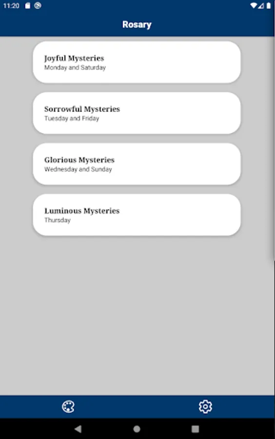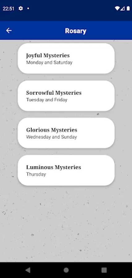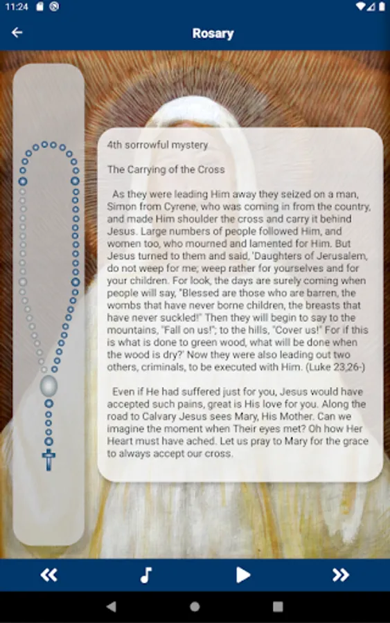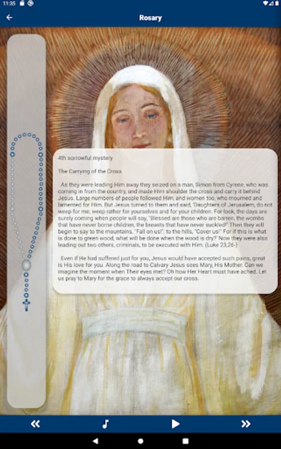 Now it is easy to say the Marian Rosary. With our virtual Rosary you can follow the prayers of the rosary without losing count. Praying the Rosary has the mysteries of each day of the week with the passages cited.
