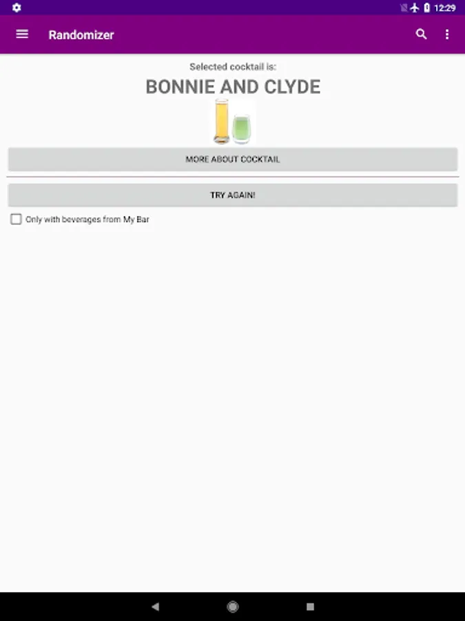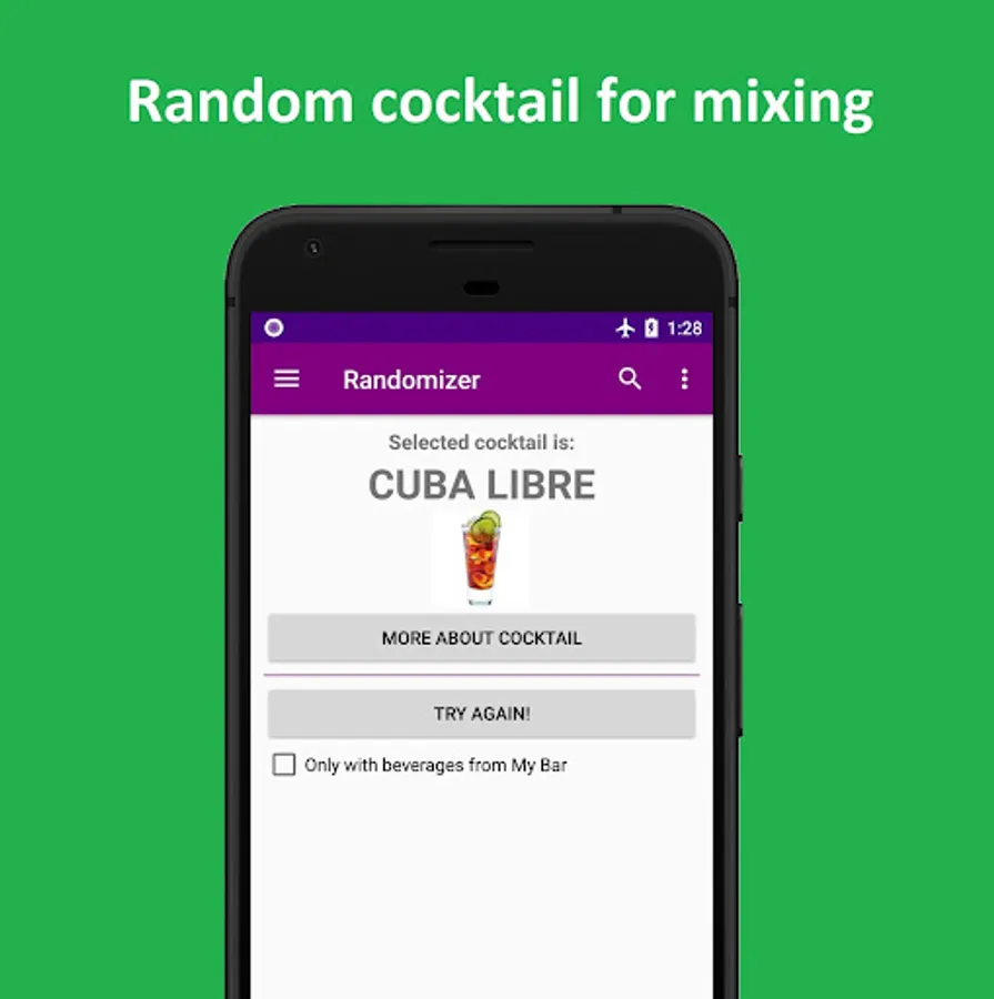 ✓ Randomizer. The Utility which choosing a random cocktail for mixing.