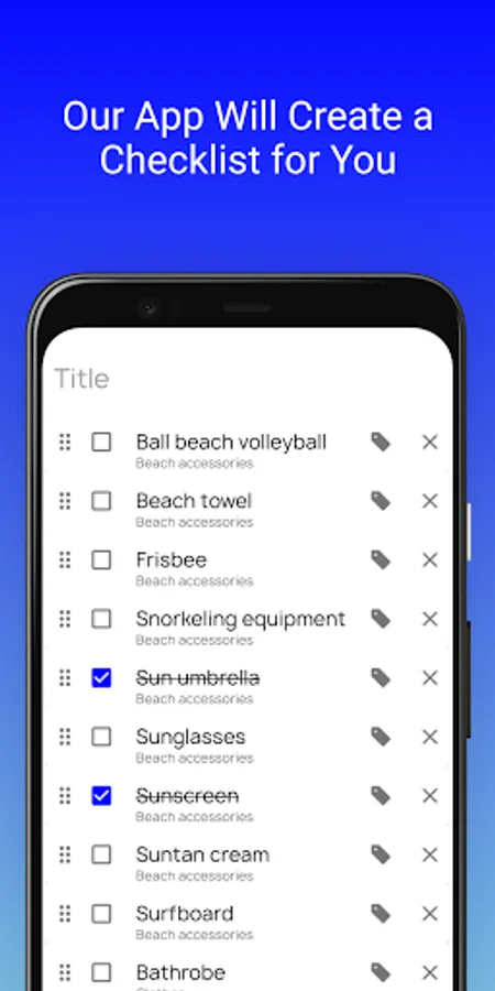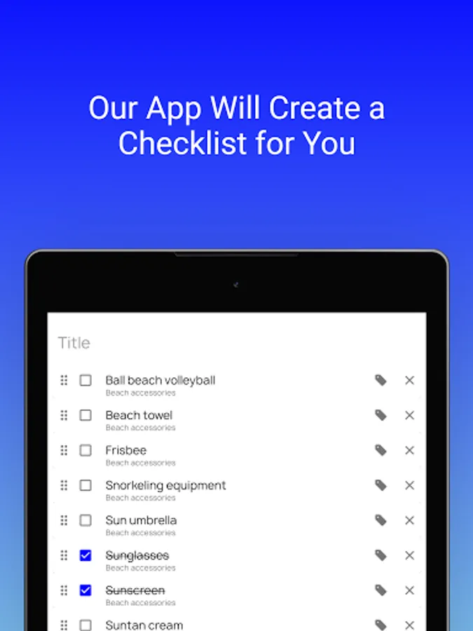 Baggage - Packing list is app, which helps you in creation list of necessary things for your journey.
