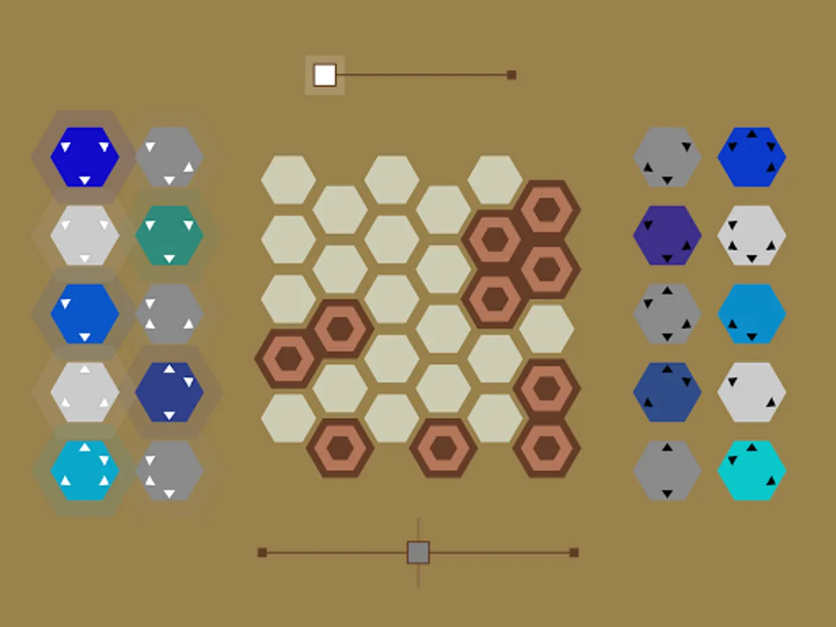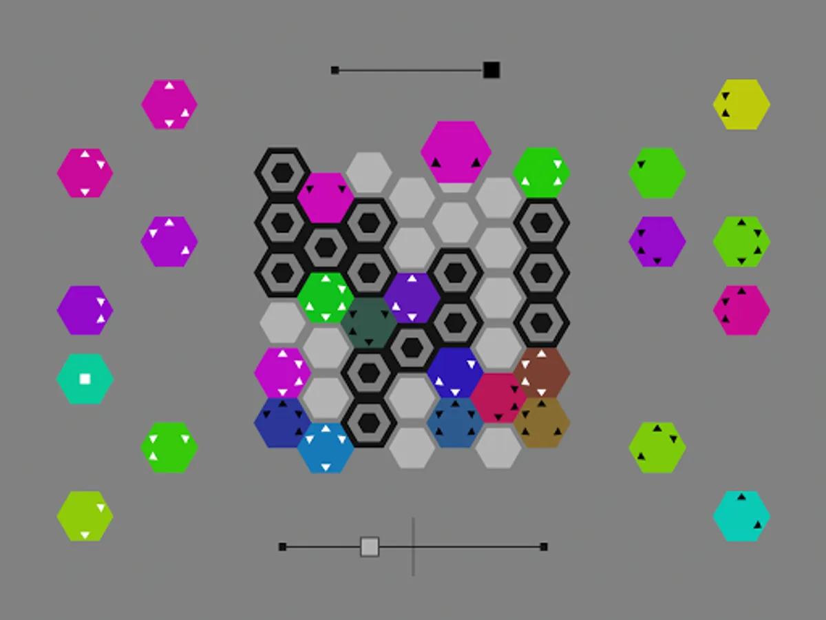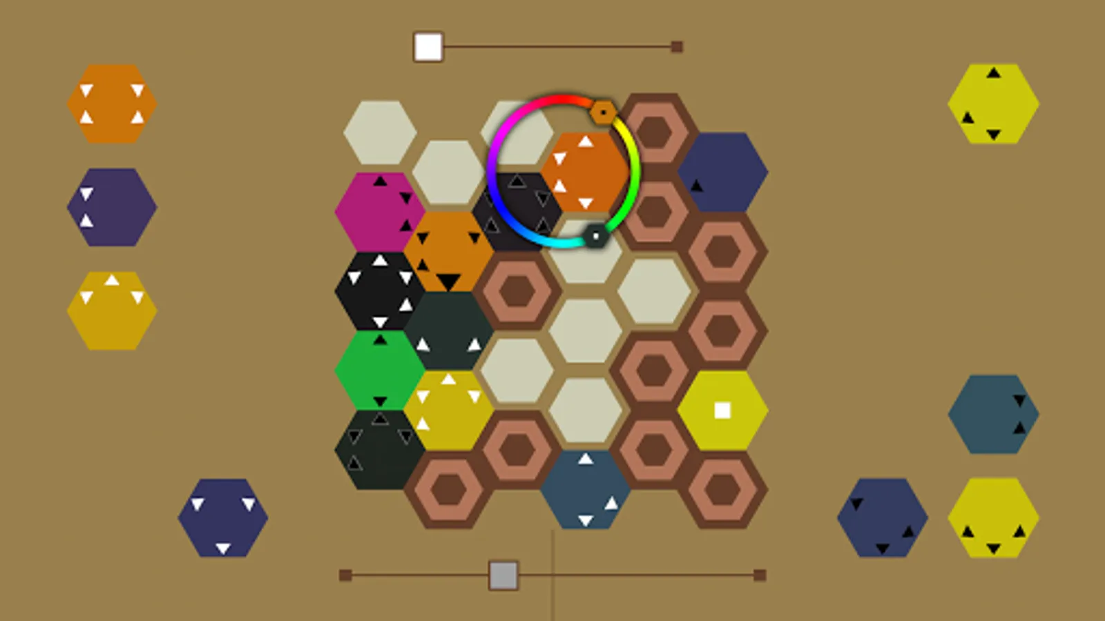 Sature is a game inspired by the experience of being a painter. Drawing from the process of mixing colors on a palette, Sature offers an engrossing turn-based strategy game. Each turn, players place colored tiles on the board. These tiles mix with neighboring colors to create new tactical situations and opportunities for inventive play. The result is a chess-like dance where players rely on their wits to outmaneuver their opponent. When the board is complete and a game is finished, a unique palette emerges from the way the colors have mixed as they were played on the board.