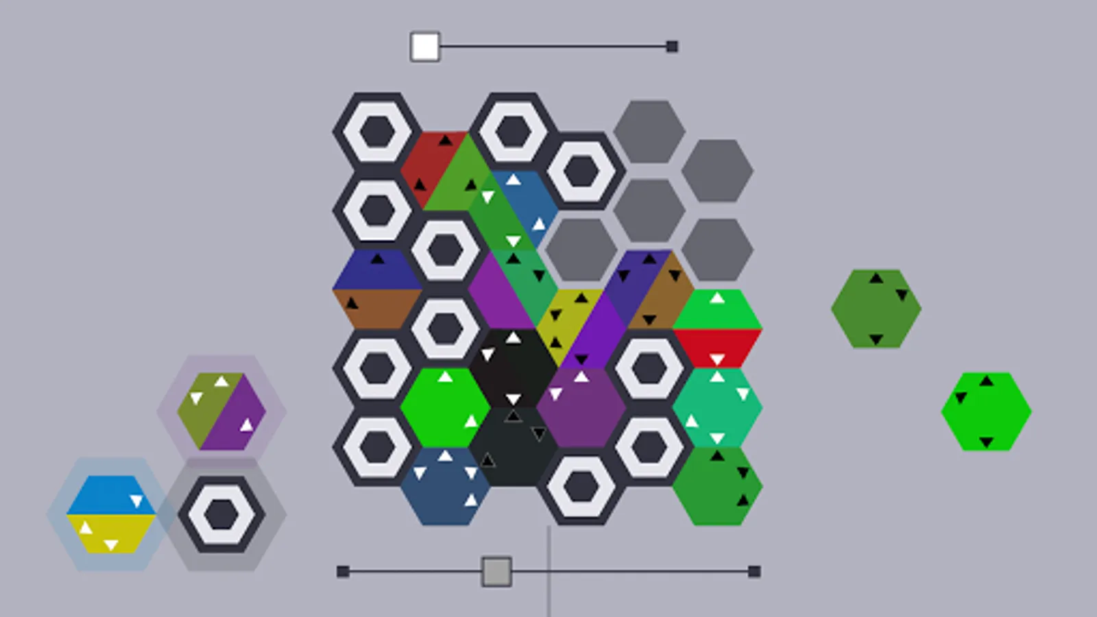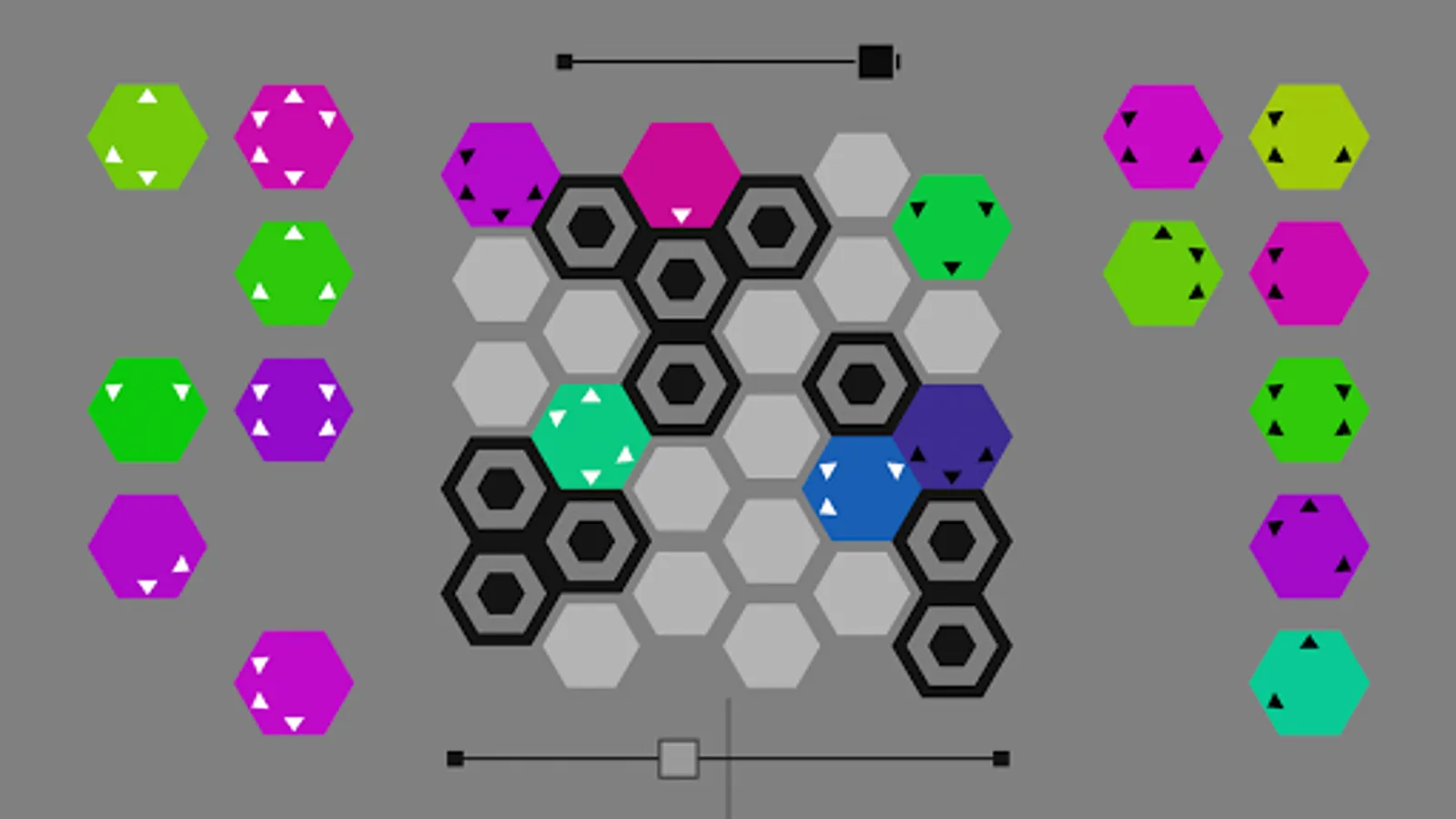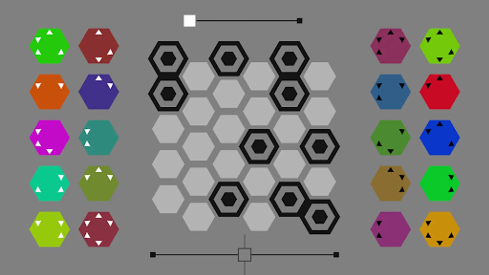 Sature is a game inspired by the experience of being a painter. Drawing from the process of mixing colors on a palette, Sature offers an engrossing turn-based strategy game. Each turn, players place colored tiles on the board. These tiles mix with neighboring colors to create new tactical situations and opportunities for inventive play. The result is a chess-like dance where players rely on their wits to outmaneuver their opponent. When the board is complete and a game is finished, a unique palette emerges from the way the colors have mixed as they were played on the board.