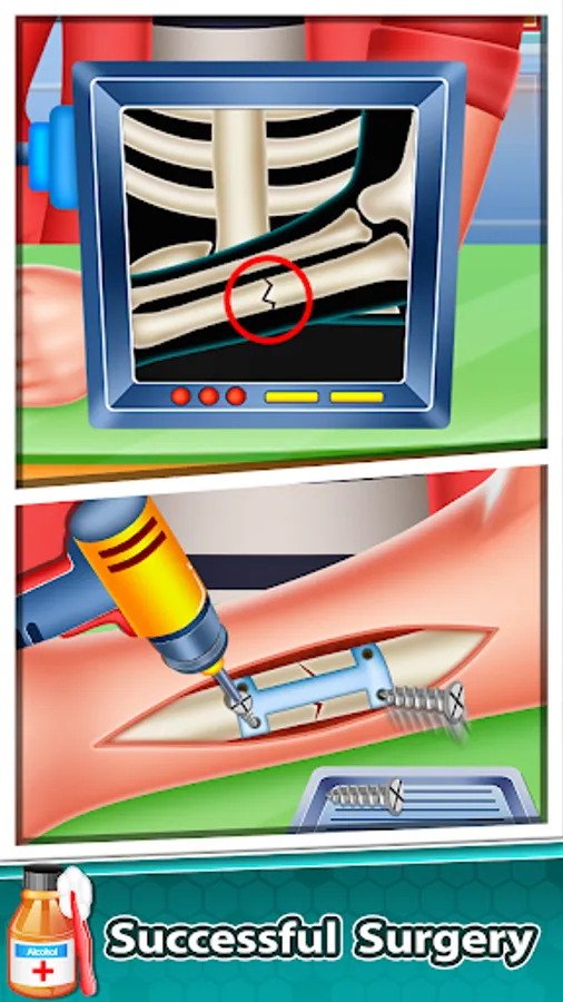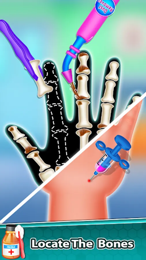 In this game you will find different surgeries like ELBOW SURGERY, FINGER SURGERY, HAND SURGERY, NAIL SURGERY, FRONT & BACK