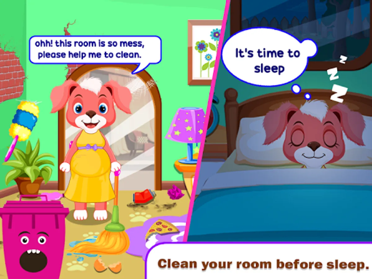 Mom wants to sleep, but the room is too dirty. Please help her to clean the room.