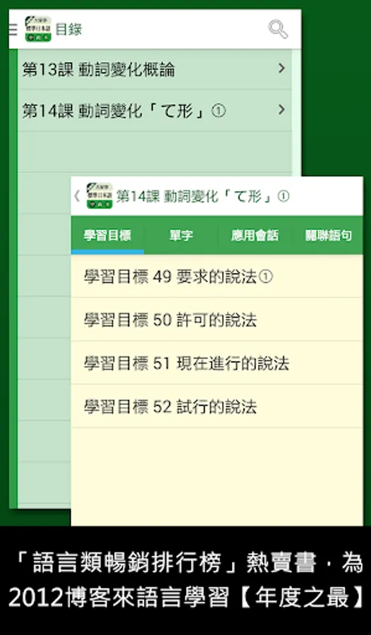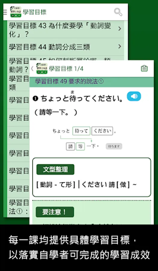 Lesson 14 [Verb て Form]: The learning objective is "request, permission, present, trial" statement of "Using the て form"