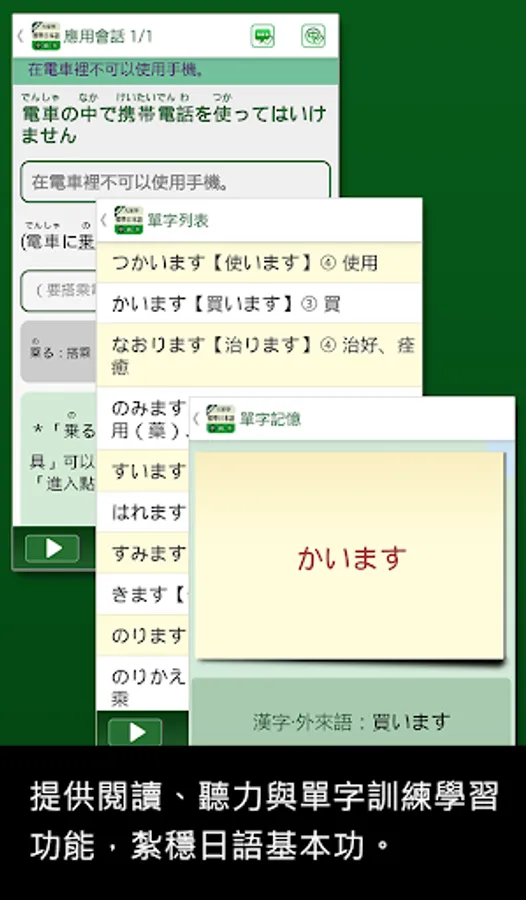 1. Reading training: Chinese and Japanese display or hide mode, you can set the full Japanese / Chinese and Japanese comparison learning environment
