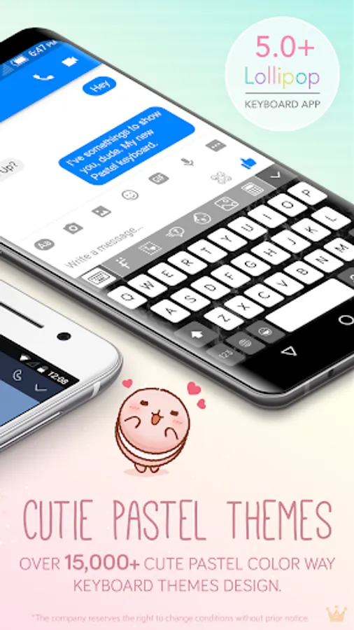 Discount 50% from $1.99 Great Price to access Keyboard Themes.and special features.Pastel Keyboard™ contains more than 15,000+* cute keyboard themes for your Android phone.