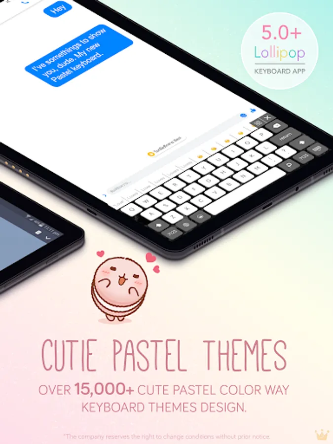 Discount 50% from $1.99 Great Price to access Keyboard Themes.and special features.Pastel Keyboard™ contains more than 15,000+* cute keyboard themes for your Android phone.