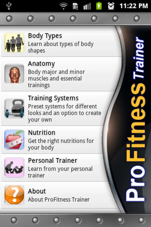 ProFitness Trainer is an elegant app made for whom seeking fitness and health. It allows you to select from pre-set training systems or create your own and send it to your friend. Also you may use pre-set diet system to follow or create your own and watch calories, fats, proteins and carbs entering your body. Get advice from your personal trainer and monitor your body in graph and watch improvement and much more. It's a one-stop-shop to Athleticism! for gym and home use